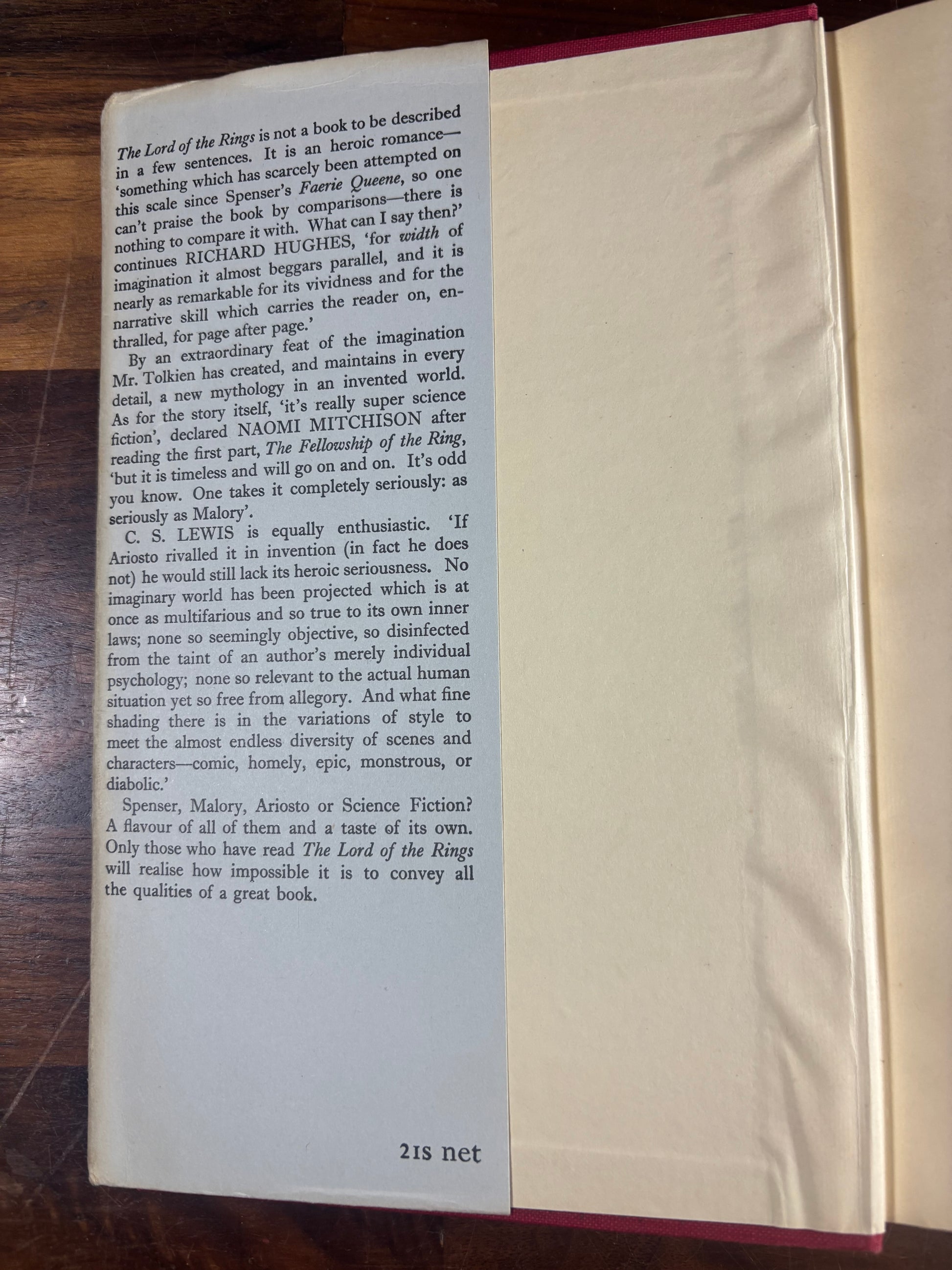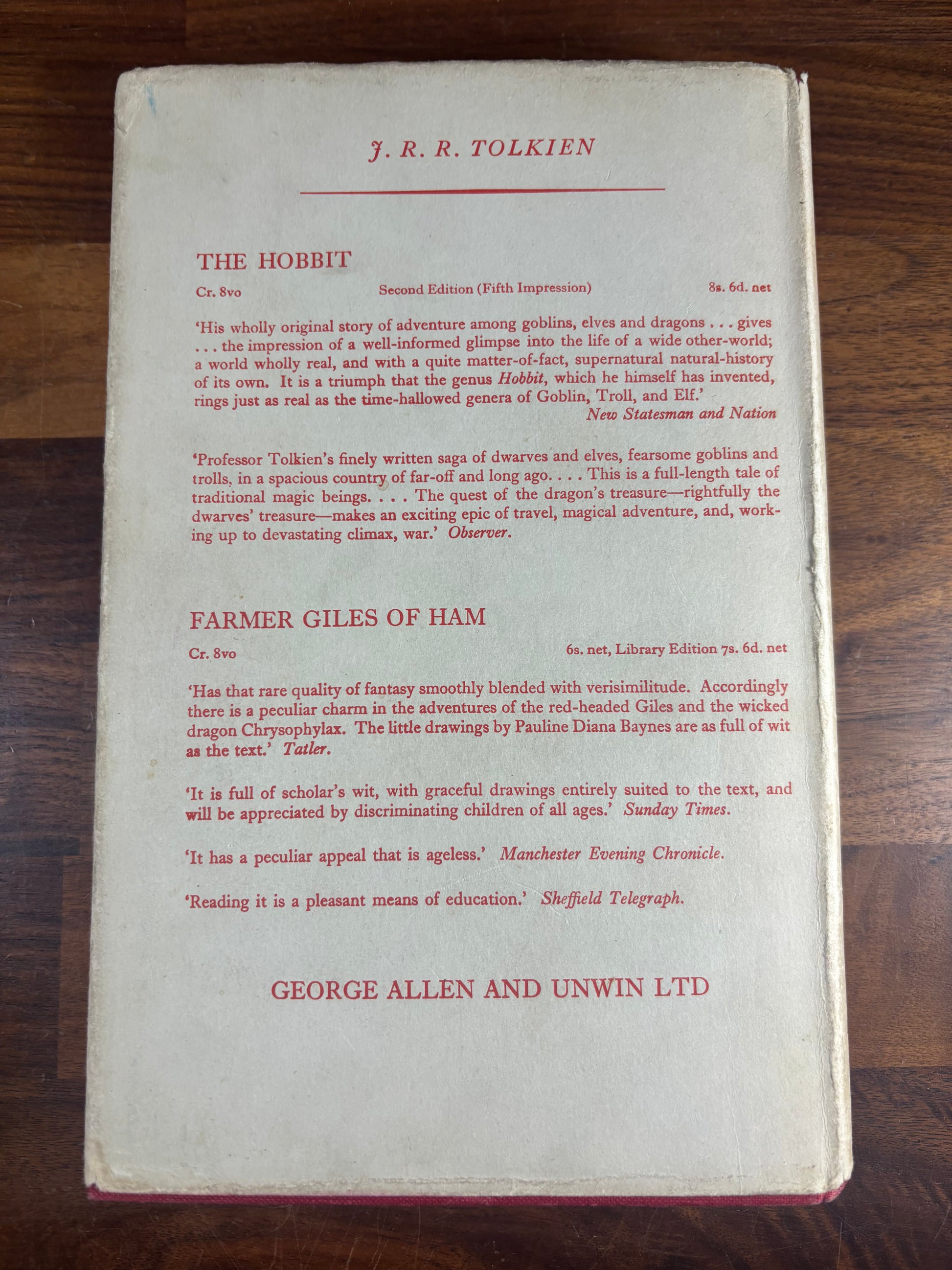 The original Allen & Unwin editions—particularly those retaining Tolkien’s own jacket designs—are regarded as the definitive collectible form of the work, representing the text and presentation as Tolkien first intended.
